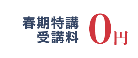 50分×2コマ×4日間 ■教科:文系・理系 ■受講料:¥0 ※別途教材費:¥2,420(税込)⇒同時に入塾で¥0 |