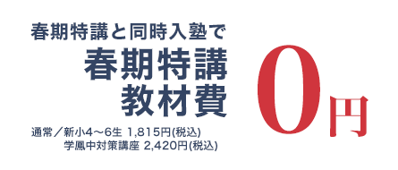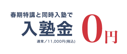 ※別途講習会施設管理費がかかります。(同時入塾の場合、¥1,100(税込)、春期特講+スタートダッシュ、春期特講のみ、スタートダッシュ特講のみ¥1,100(税込))