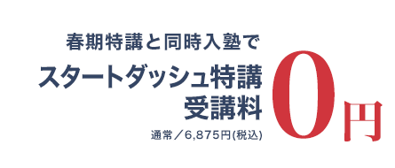※別途講習会施設管理費がかかります。(同時入塾・春期特講のみ 1,100円(税込)/春期特講+スタートダッシュ、春期特講のみ、スタートダッシュ特講のみ 1,100円(税込))